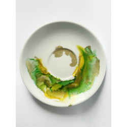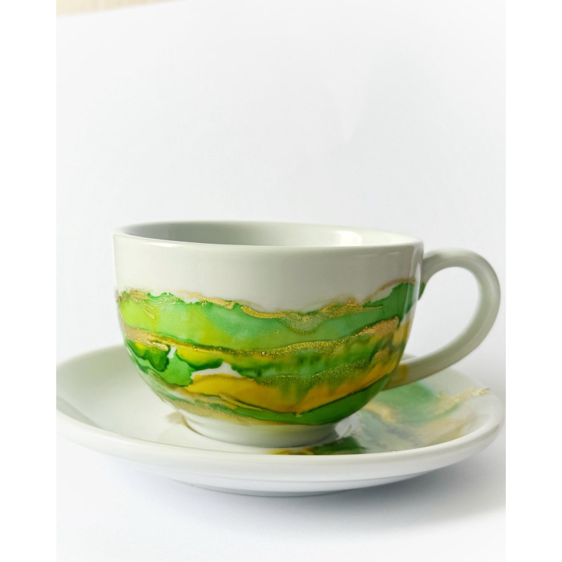 Unikalna filiżanka porcelanowa ze spodkiem  zdobiona  tuszami alkoholowymi przez podopiecznych Fundacji Dorotkowo podczas zajęć arteterapii. Każdy egzemplarz to efekt twórczej pracy i zaangażowania, który czyni go wyjątkowym.