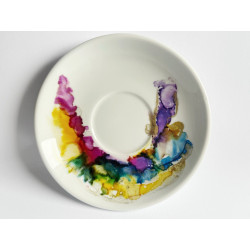 Unikalna filiżanka porcelanowa ze spodkiem zdobiona tuszami alkoholowymi przez podopiecznych Fundacji Dorotkowo podczas zajęć arteterapii. Każdy egzemplarz to efekt twórczej pracy i zaangażowania, który czyni go wyjątkowym.
