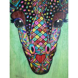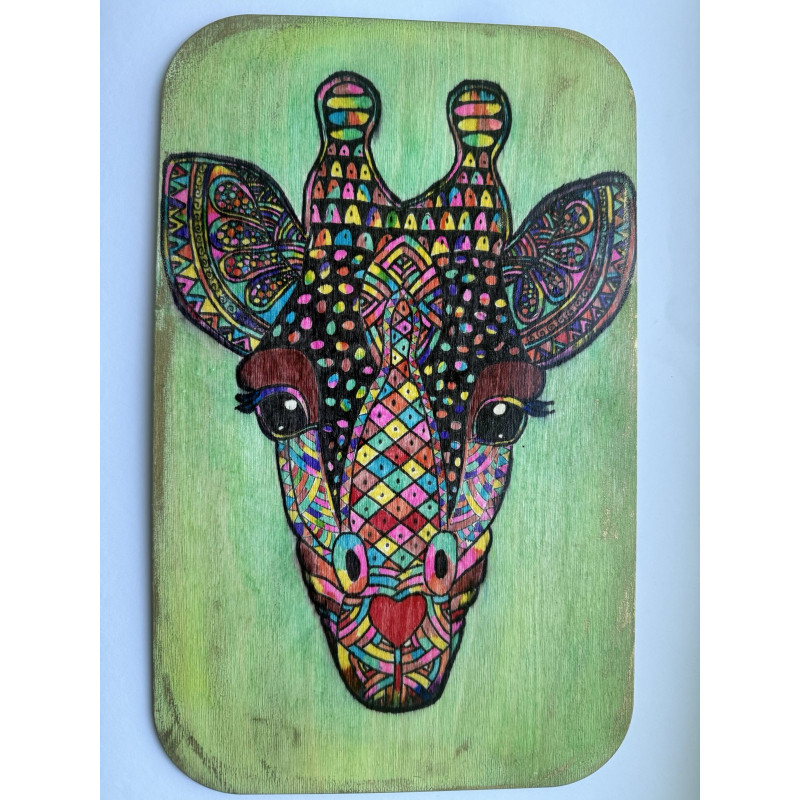 Drewniana podkładka zdobiona metodą decoupage przez podopiecznych fundacji Dorotkowo na zajęciach arteterapii.